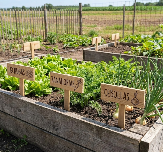 Estas etiquetas para huerto son más pequeñas. Al ser un ambiente controlado, aquí sí puedes usar: